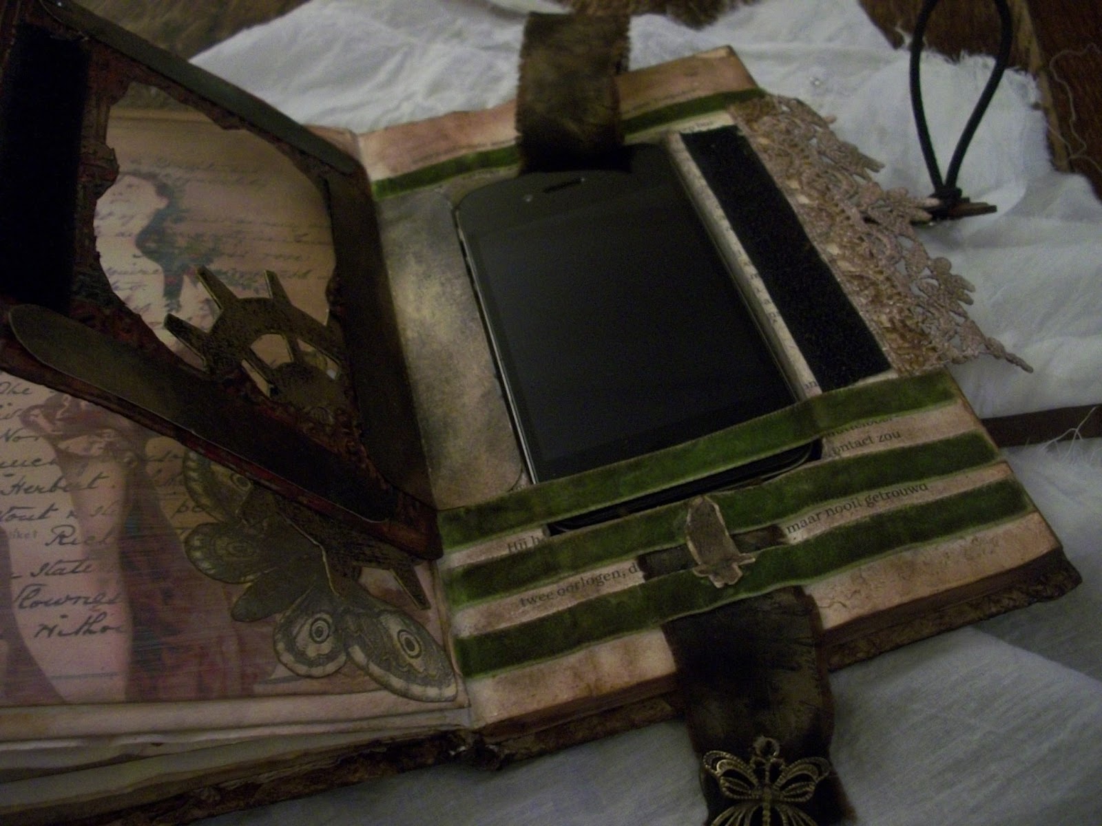 Made to acompany me when I go to the Elf Fantasy Fair in the Netherlands, dressed in victorian gear (ehm clothes). I can now use my iPhone, while still appearing as a victorian lady, reading a book …