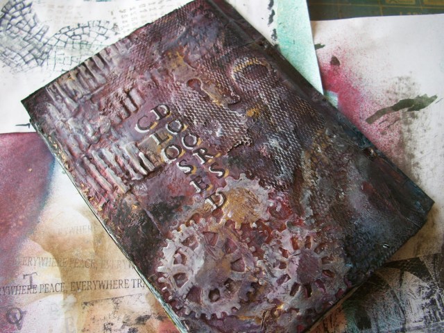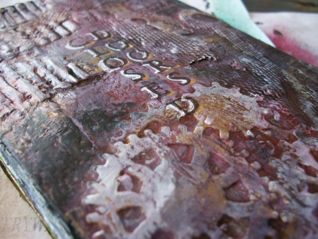 I finished the last few pages of the mini art journal insert. I tried some cool layering and distressing techniques. Unfortunately, I completely forgot to make progress pics. I’ll try and remember that for next time, as I always enjoy watching the process of how one thing (or several things) becomes somthing completely different and unexpected.