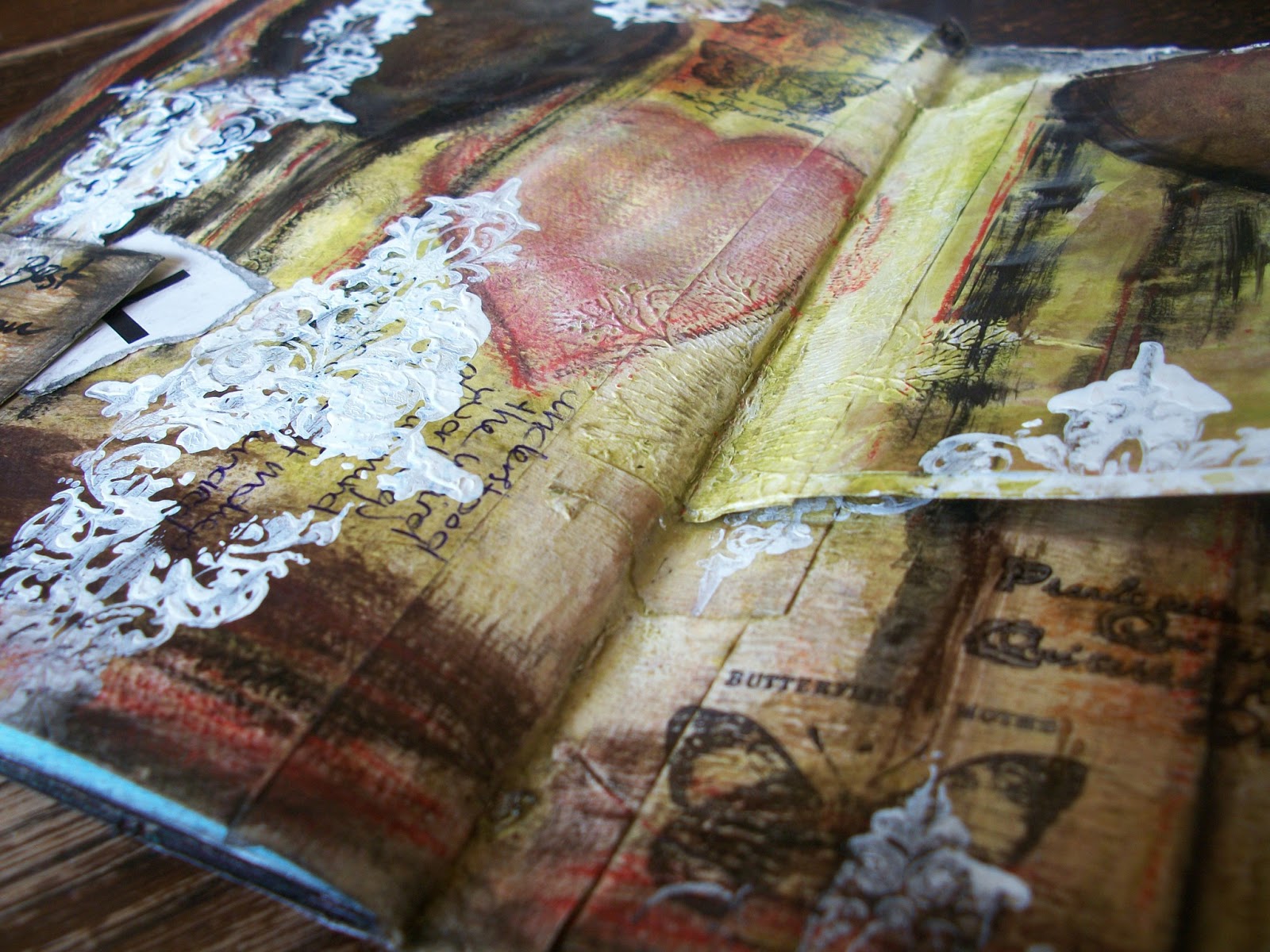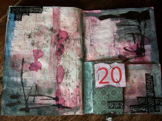 I did write a rather personal message on the page, but then stamped over it with titanium white acryllic paint. Wich is, I find, a very purging action.