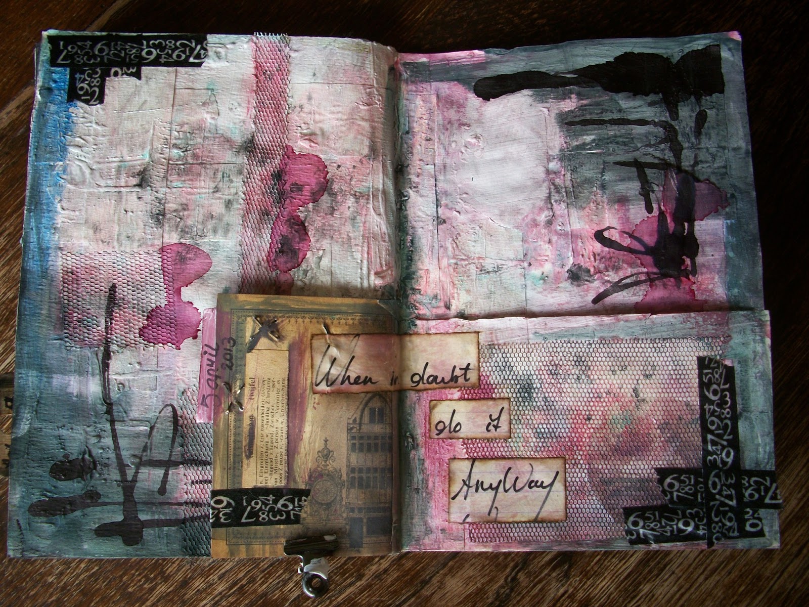 The first page I kept rather simple, but I love all the texture that’s going on. It’s a very tactile page. I even did a little Donna style scribling with the alcohol ink. I loved it. I think I will be doing more of that.