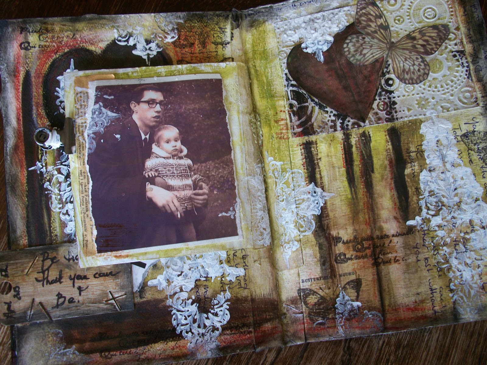 The second page is quite different. It has a more personal nature, as I used a picture of my father and me. The picture was taken a long long time ago. My father isn’t with us anymore and I miss him every day. So yes, I felt I needed to make this page. I love this picture so very much.