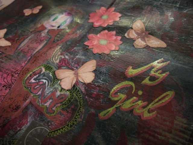 On top of all that I incorporated a drawing made by my daughter, specially for me. I really didn’t want to touch that or cover it up, so I had to work around that.