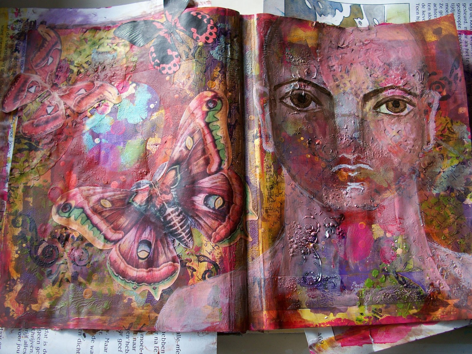 WOW Amazing journal pages! I love all the color and texture. Her eyes are beautiful!