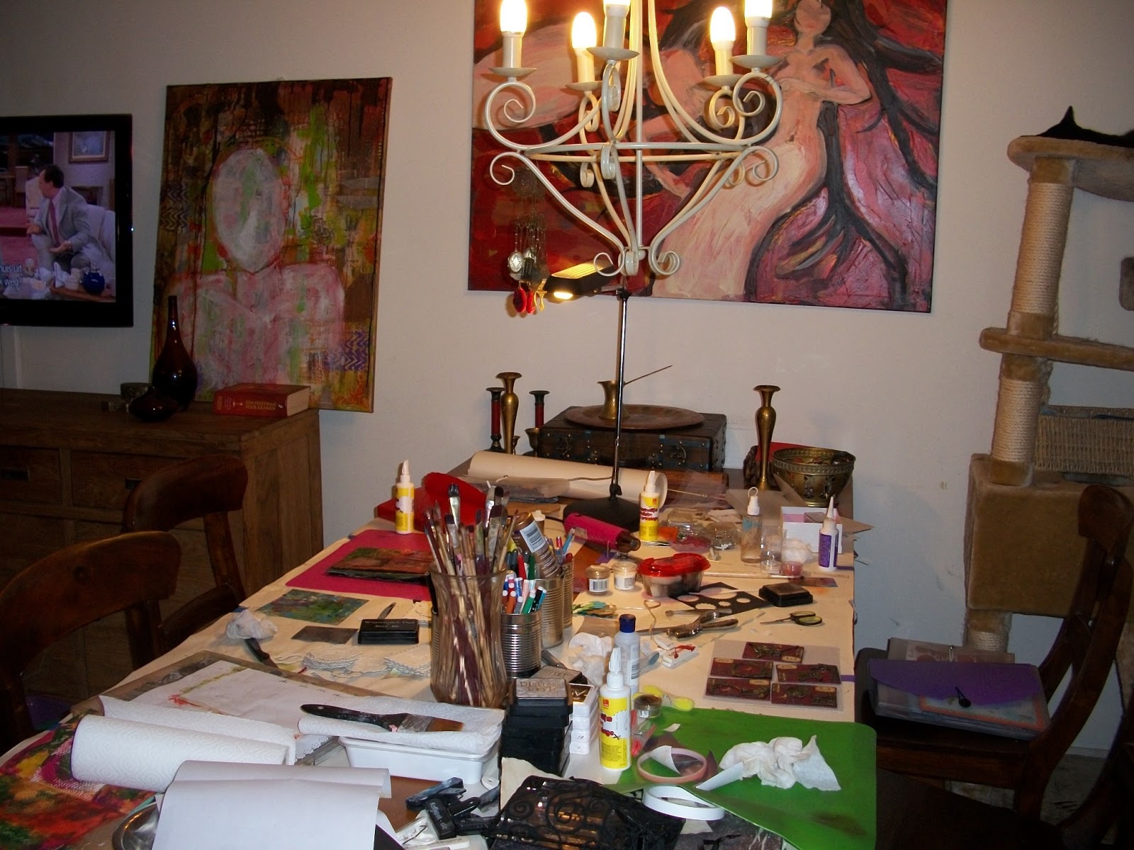 By the end of all this my dinner tab;e looked like this, completely exploded crafting stuff.