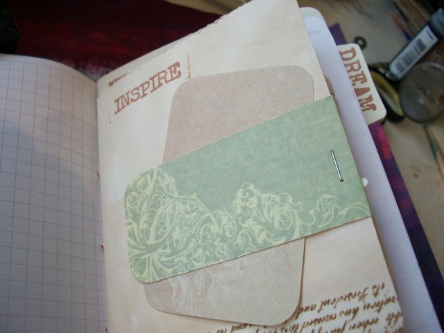 The envelope above was actualy sent to me by Toni and had the ATC for the WOYWW4 swap in it. Thank you Toni, as you can see I put it to good use in my little travel journal =).