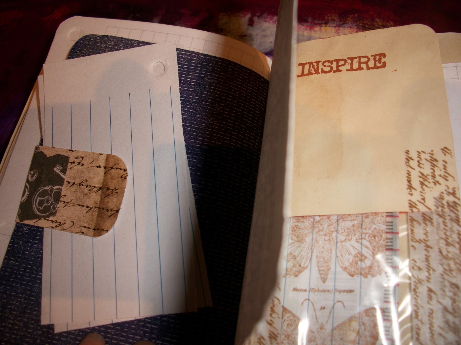 Scrapbook papers, ledger papers, tea dyed junk envelopes, new envelopes, doilies, vellum and wot not.