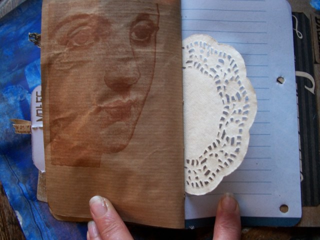 This is where I stamped her. I allmost like the bled through image better…it has a certain softness to it.