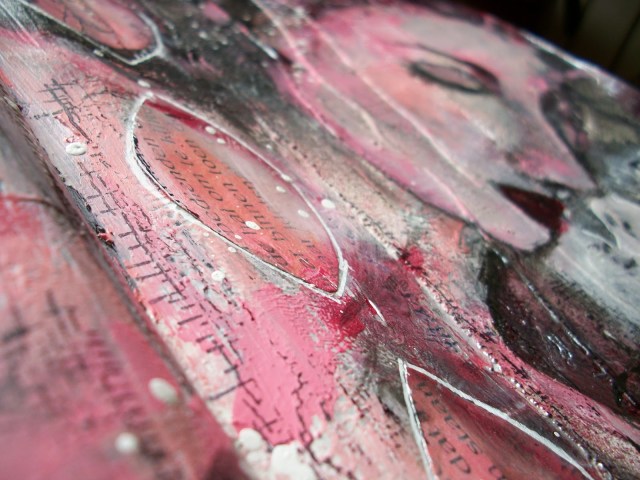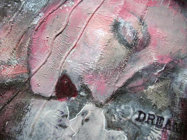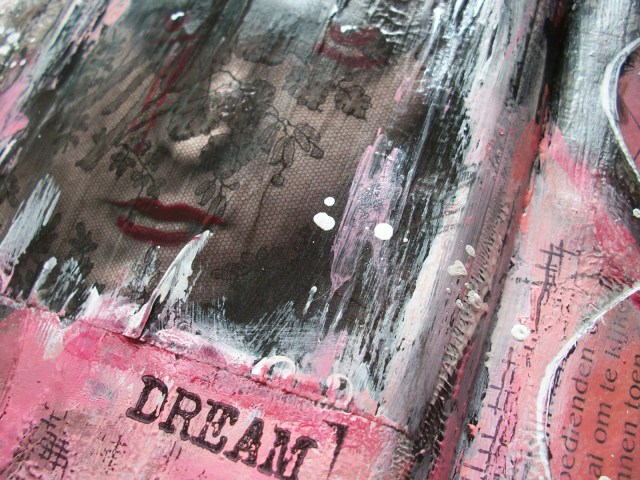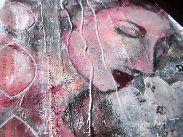 I don't know what you think is wrong with your video – absolutely amazing and so inspiring. Your journal page is just so, so lush. I love the kissing couple and the face peeking through. The texture is glorious.