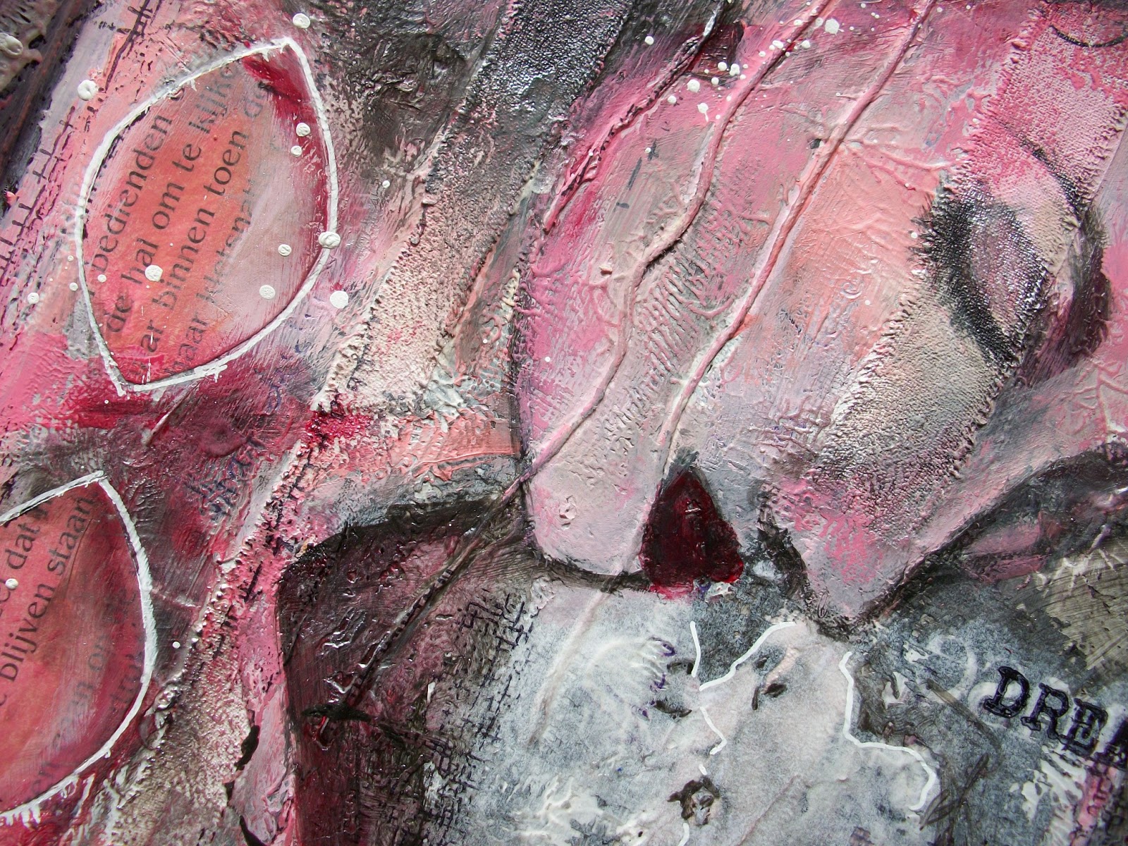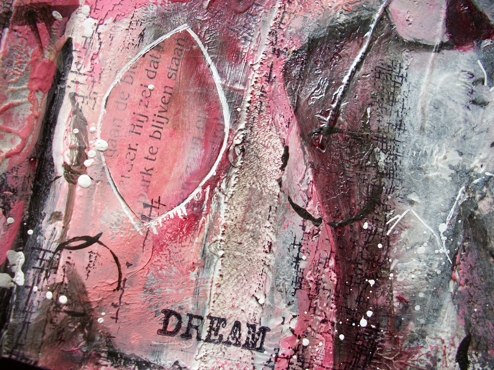 I don't know what you think is wrong with your video – absolutely amazing and so inspiring. Your journal page is just so, so lush. I love the kissing couple and the face peeking through. The texture is glorious.