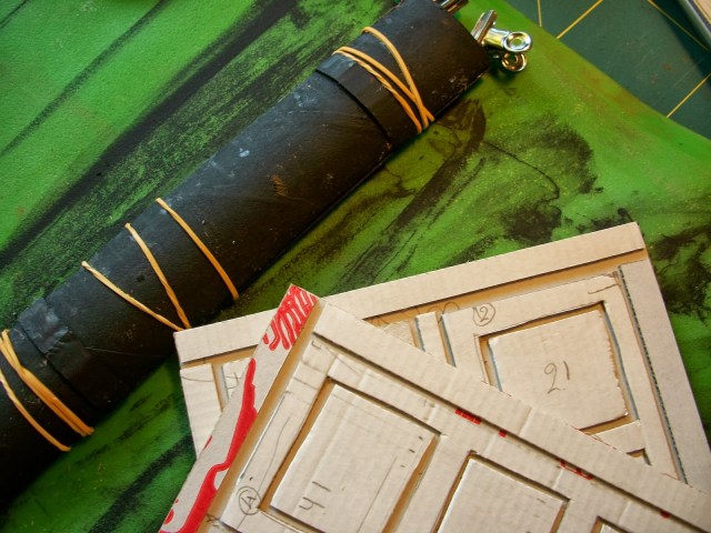 I made a hollow spine with the paper towel roll , so I could later put elastic bands through the spine, without them being visible from the outside.