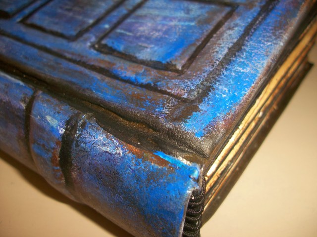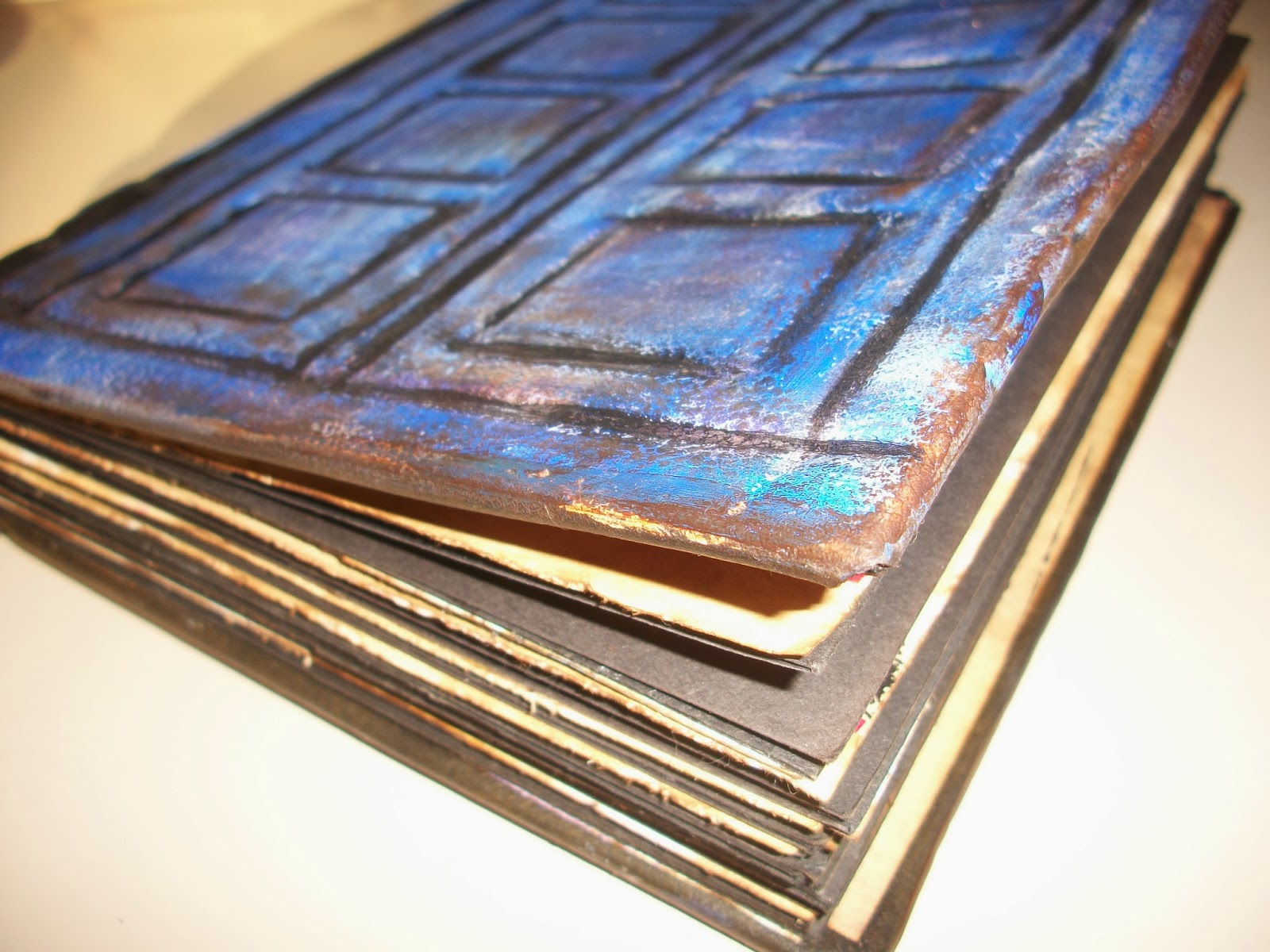 I then painted this with 4 different kinds of blue, white, black and ochre, to make it look like a very old River Song book.