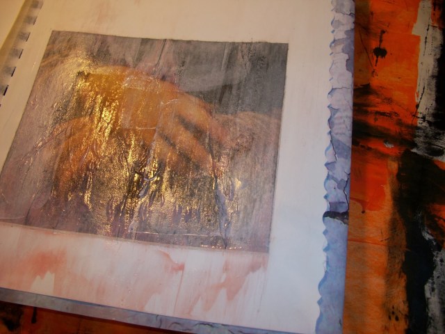 Oh Monique, that is so wonderful!! Can't believe that I will have this in MY JOURNAL….. And it's kind of funny to see my Journal in your blog, on your table… And thanks for beeing that careful! And what you told about beeing a bit anxious to paint in it – thats what I felt when I did my pages in the other journals… It's good to know that this is not my personal problem… 🙂