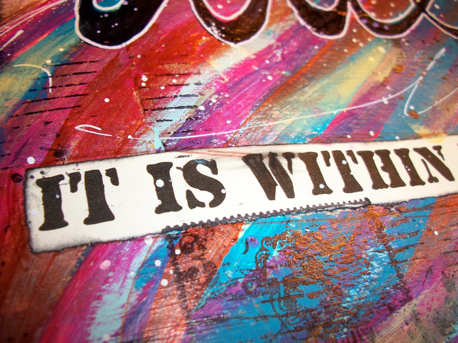 I found some embossed pieces on my desk that reminded me of some sort of door and added them to the pages. Yet more “outer”.