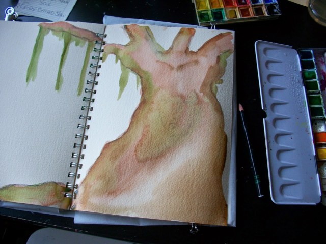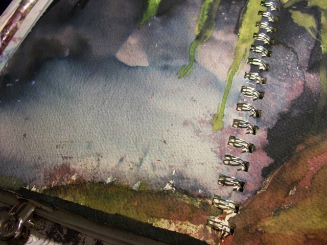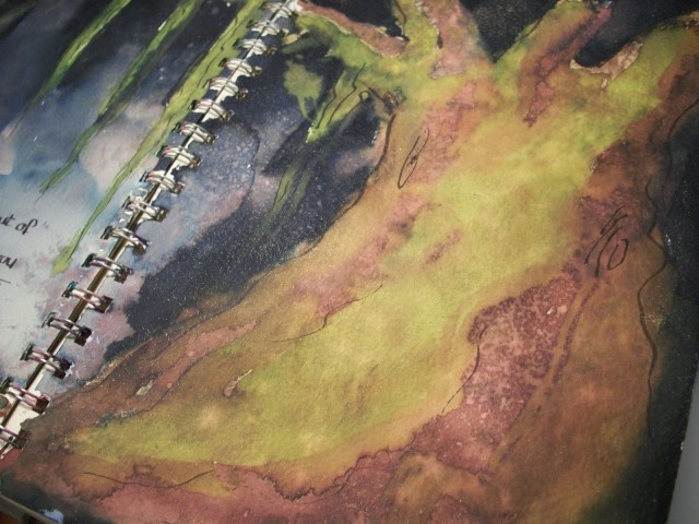 Trying out the colours and since they were green and brown, I thought I might use them for a tree I started in Susan’s journal.