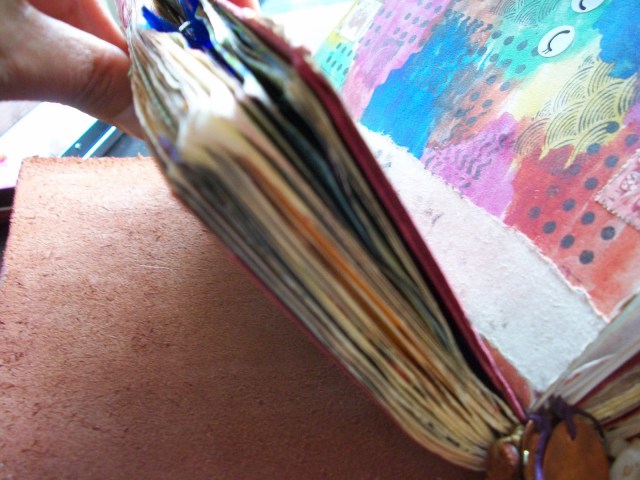 Last week one of the traveler’s came home after its first trip around the world and I was at awe. Its so wonderful to see all the contributions in the book, all those pieces of life from all around the world. To read about them, see their photo’s and feel their art and heart.