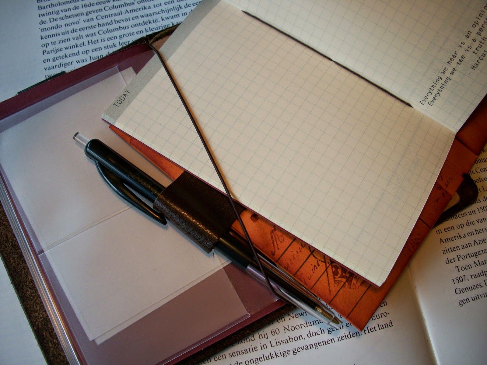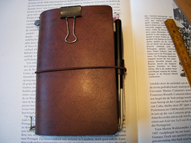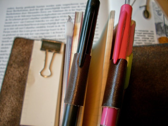 As an example I used my Fieldnotes/Pocket sized Traveler’s Notebook, with just one elastic (1 long and 1 short)