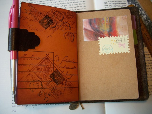 I received several questions about how to add extra booklets to your traveler’s notebook and since this is rather difficult to explain with just words, I thought I’d make a blogpost about it with pictures to make it easier to see.
