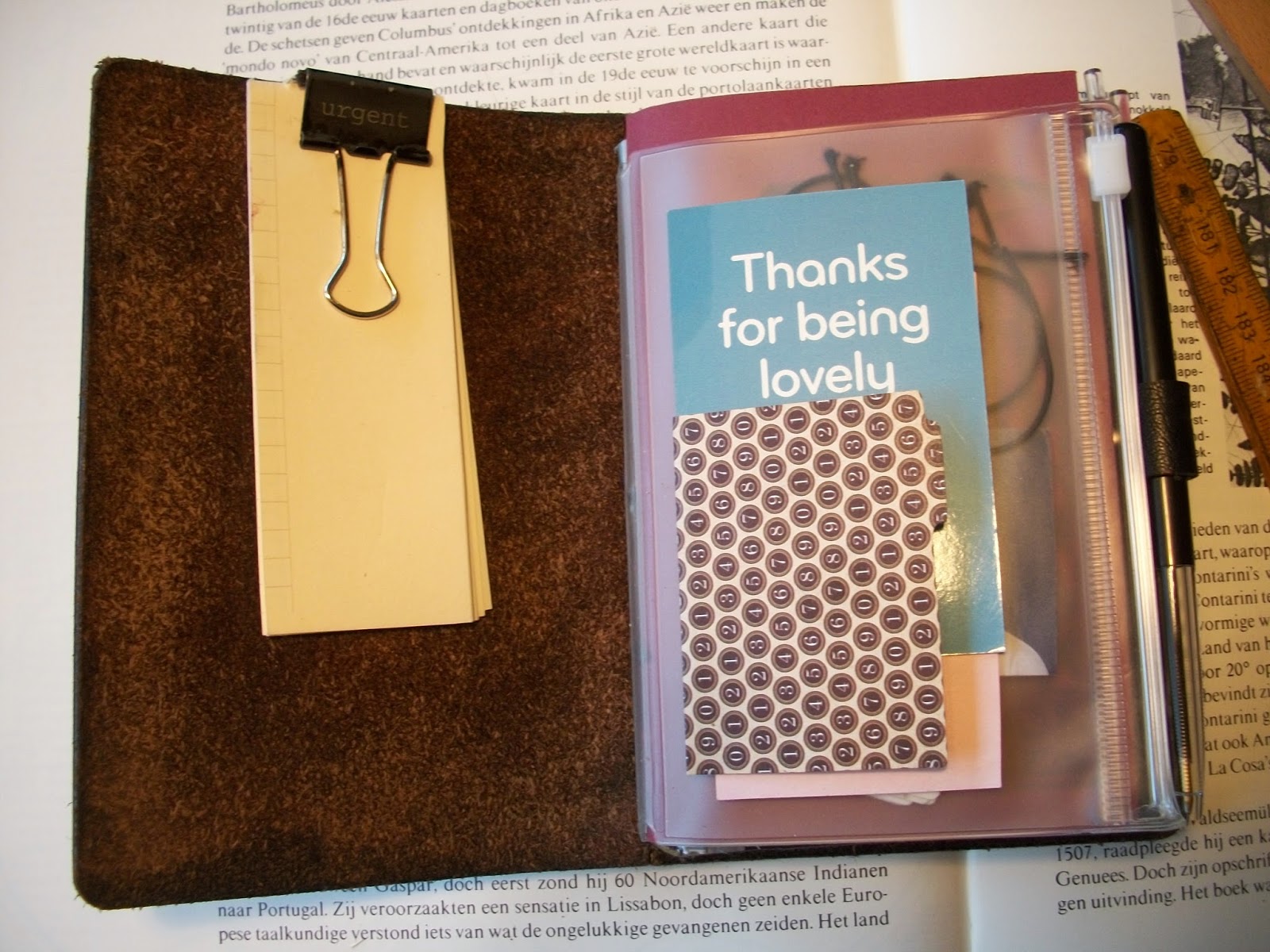 Since my TN’s have a slit at the top and bottom hole, I always tuck the bookmark between the bottom slit, thus securing the booklets even further.