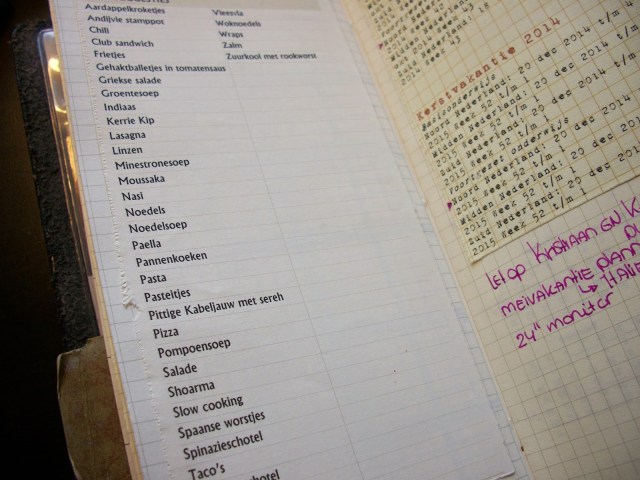 At the end of the booklet I pasted a list with tried and tested menu ideas…in case we run out of things to think of for dinner.