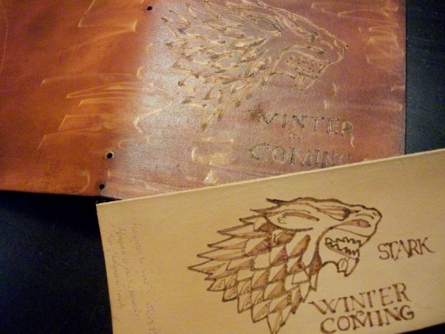 Turned out beautifully – it's a gorgeous piece of artwork! I'd wind up burning myself doing something like pyrography … I'm dangerous enough with a rotary cutter! And my husband would totally steal this, as he's a big fan of Game of Thrones. Thank you for the chance to win!