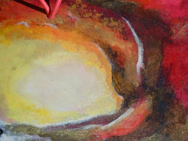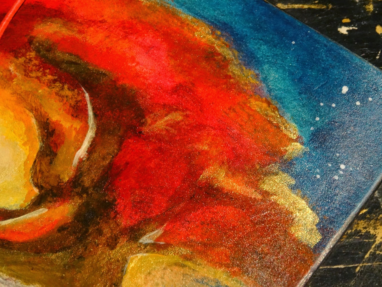 As you can see in the next picture, it’s a rough sketch with paint, after which the rest gets painted, slowly building layer after layer.