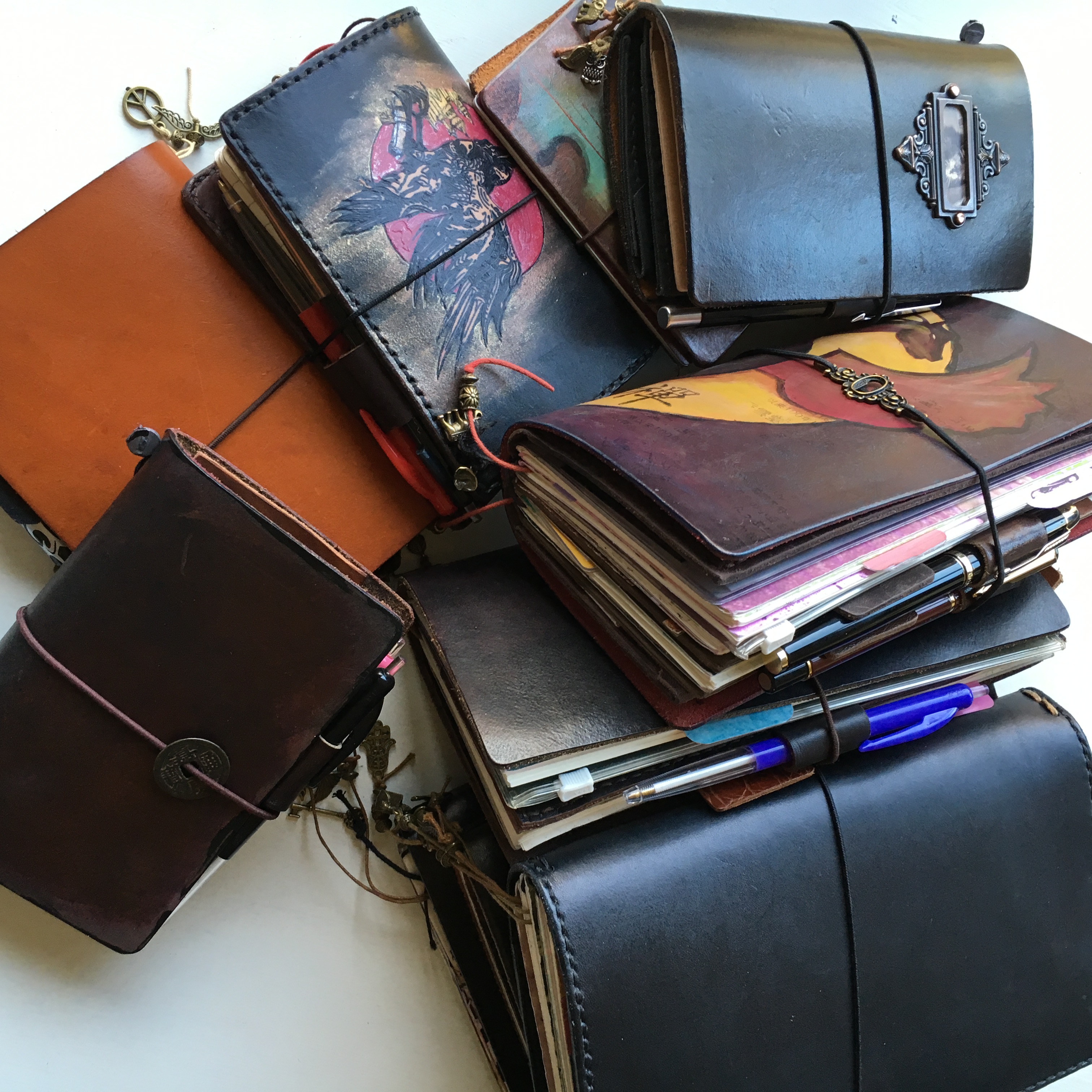 To start you all off I made some pics of a few travelers I have in use at the moment, my little planner pile….