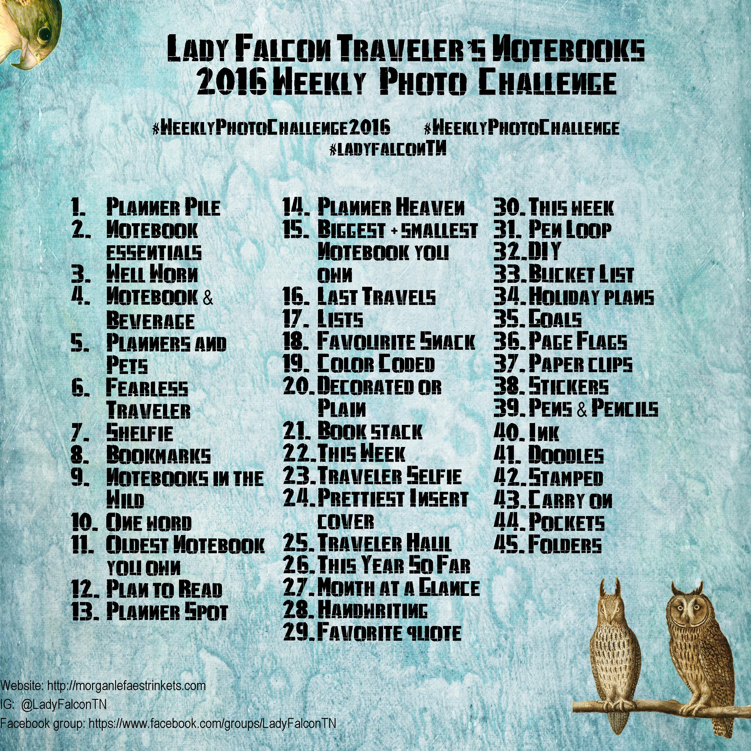 So show us your Notebooks and Beverages in the Lady Falcon Traveler’s Notebook Facebook group and tag them #weeklyphotochallenge2016nr4. Every week the photo with the most likes will be chosen for the group banner and that photo will get entered in the contest at the end of the year.