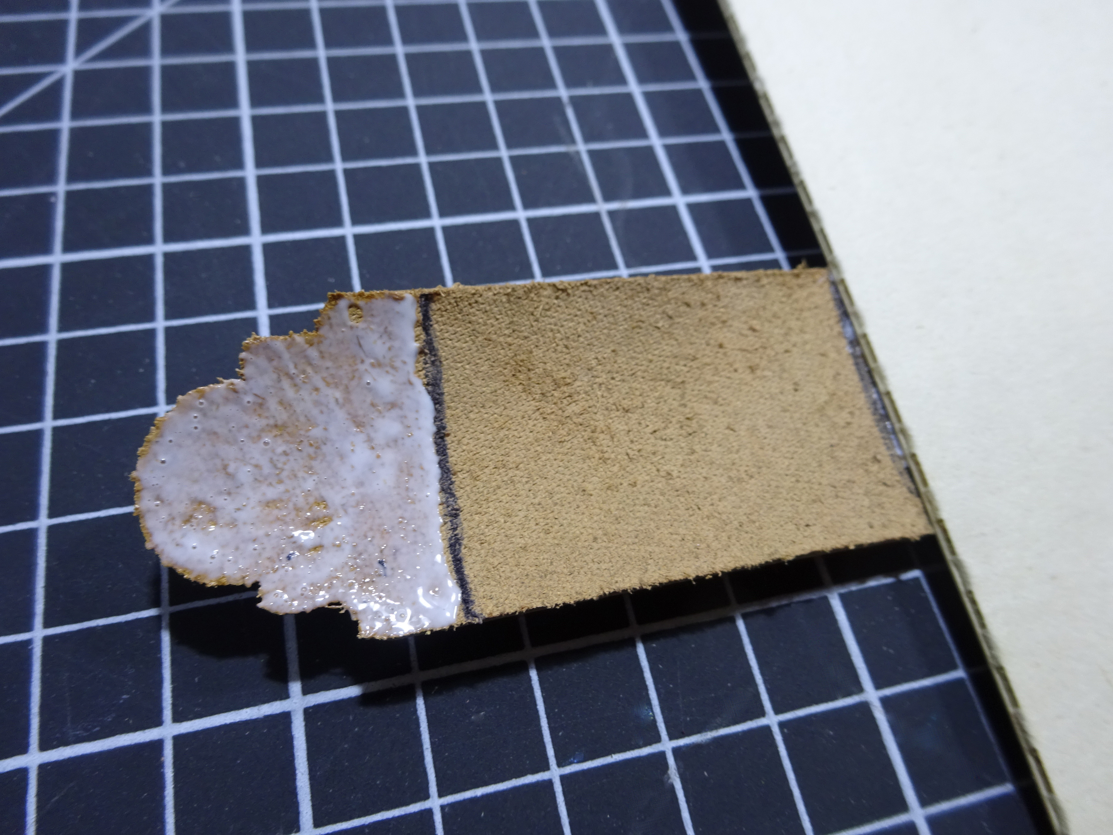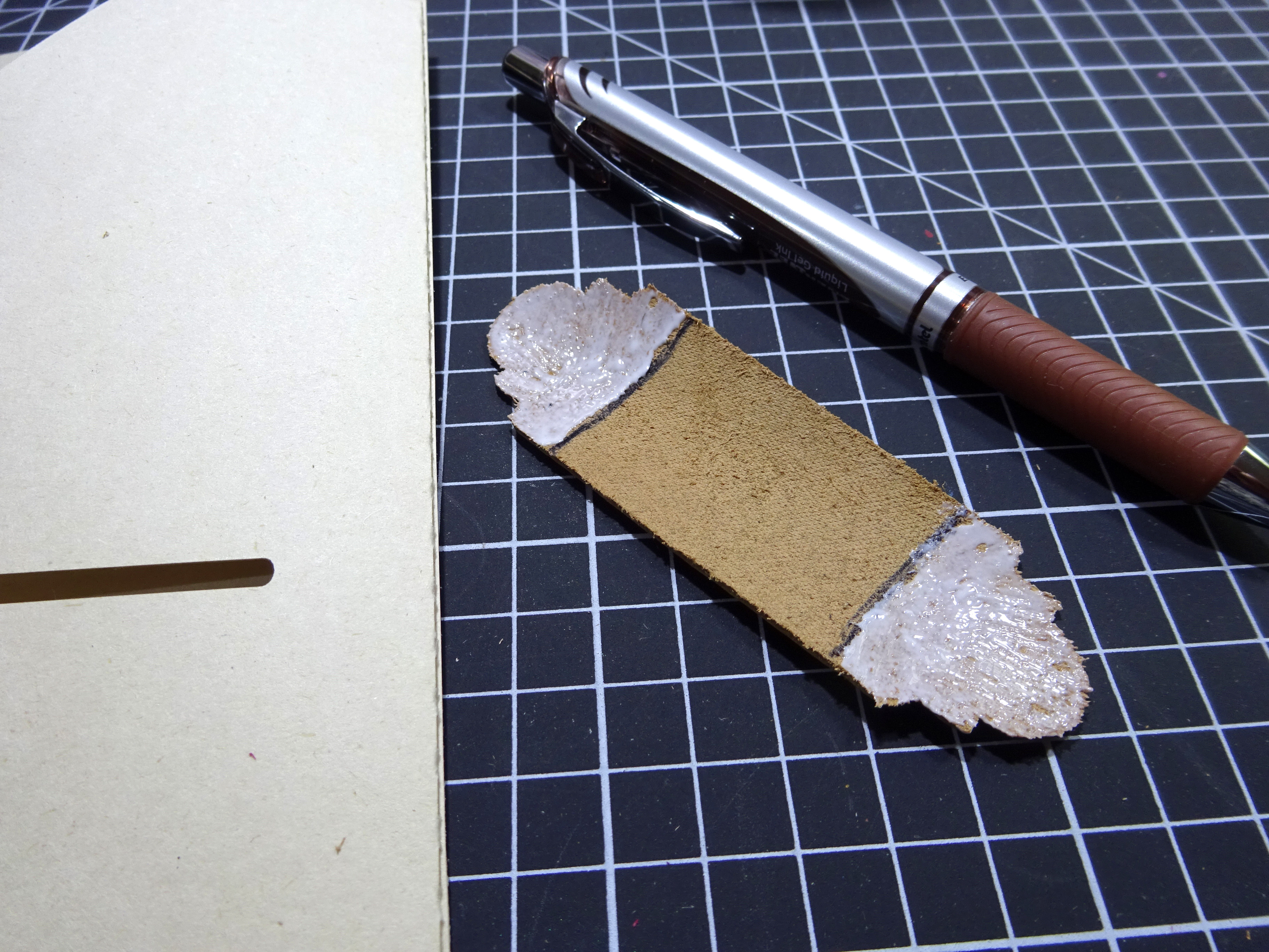 Put Glue on the marked spots of you leather and glue the piece to your folder, making sure left and right side are on the correct height.