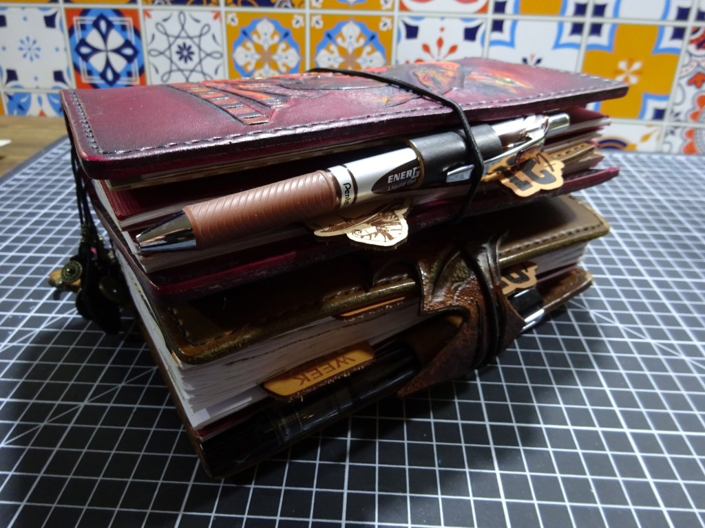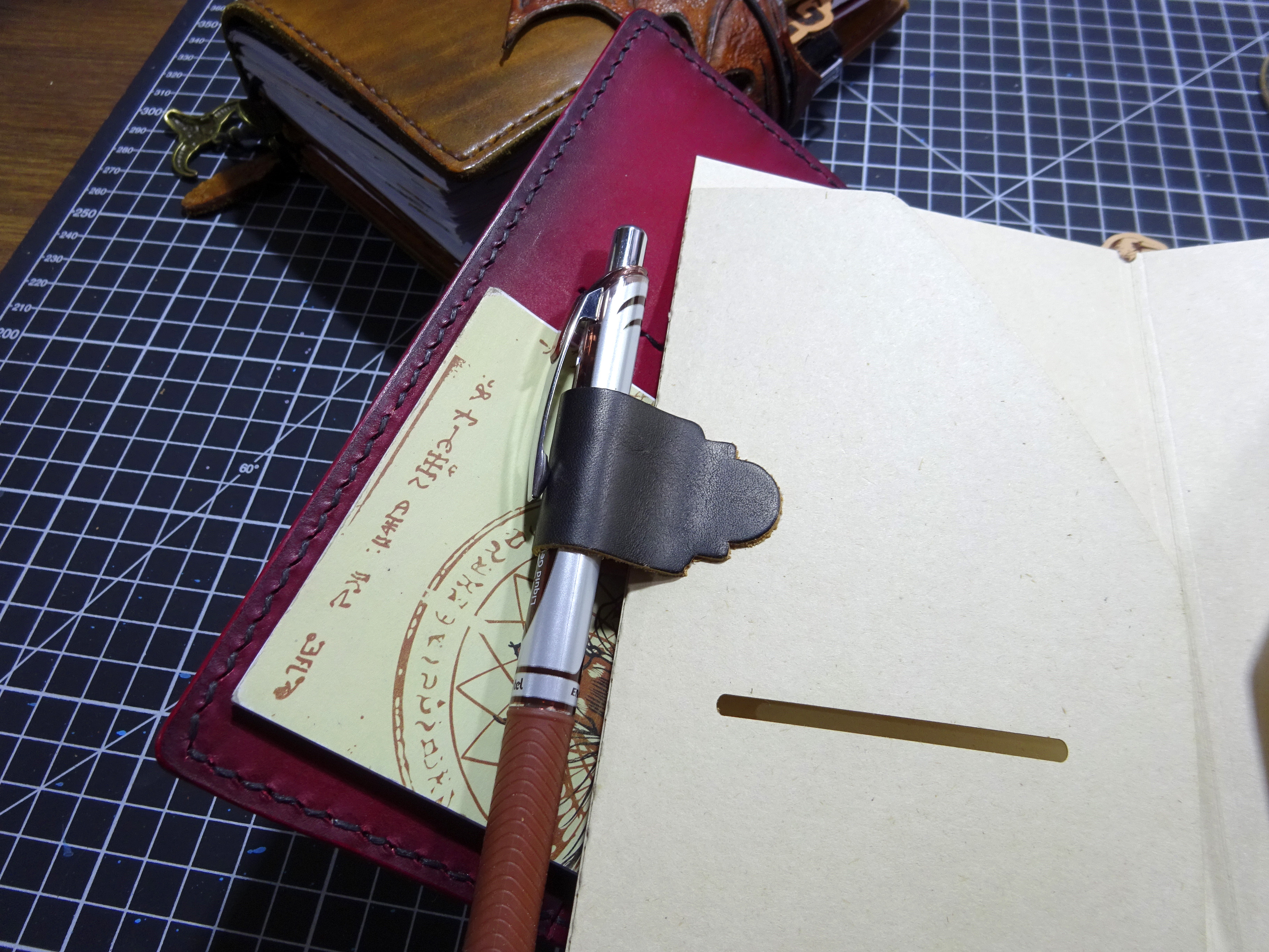 I do use leather folders with a pen-loop in some notebooks, but for others I only have paper folders.