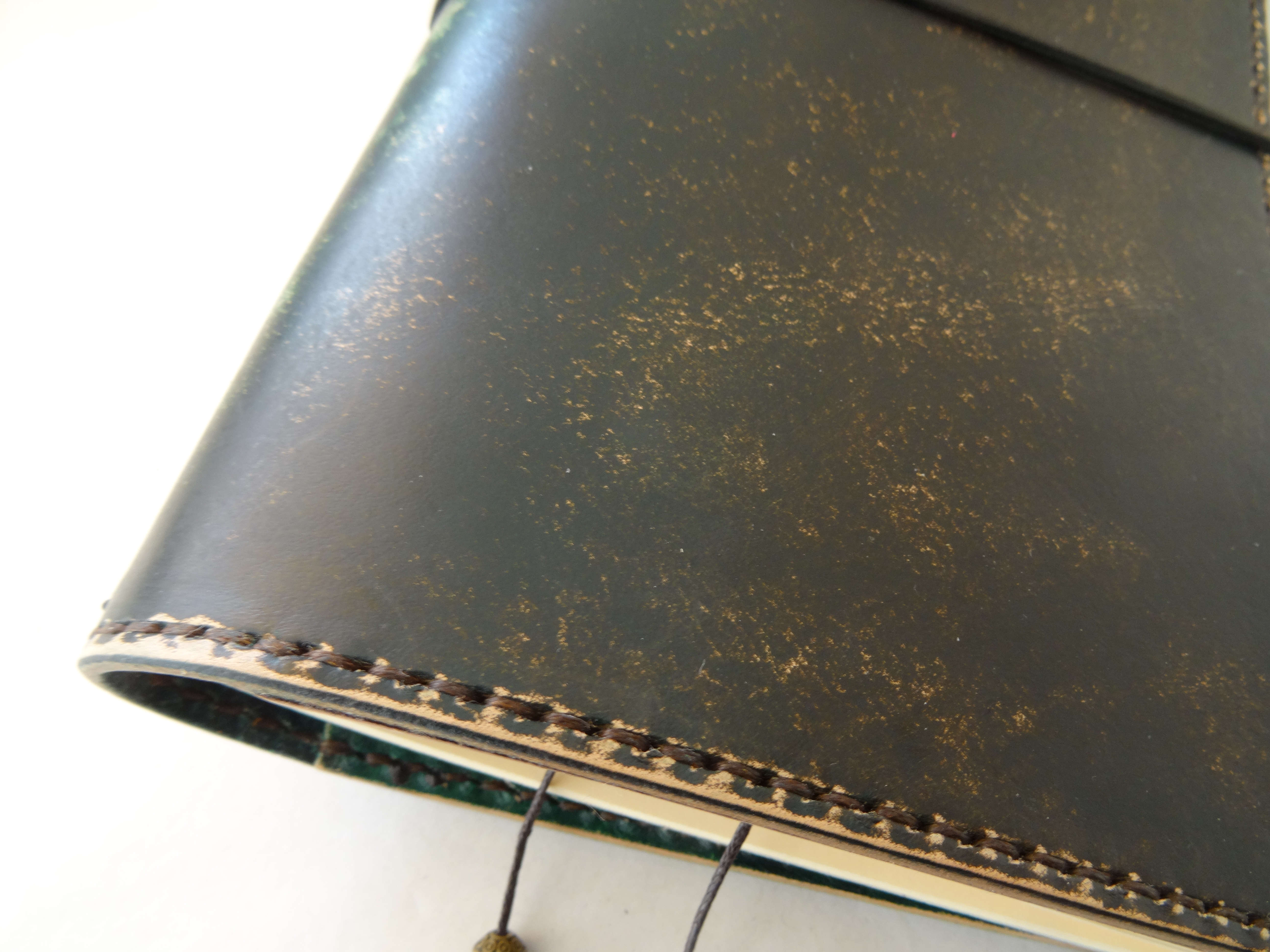 The dyes used for the standard Traveler’s Notebook listings (here and here) are aniline solvent based dyes, these are permanent transparent dyes that will penetrate the leather.